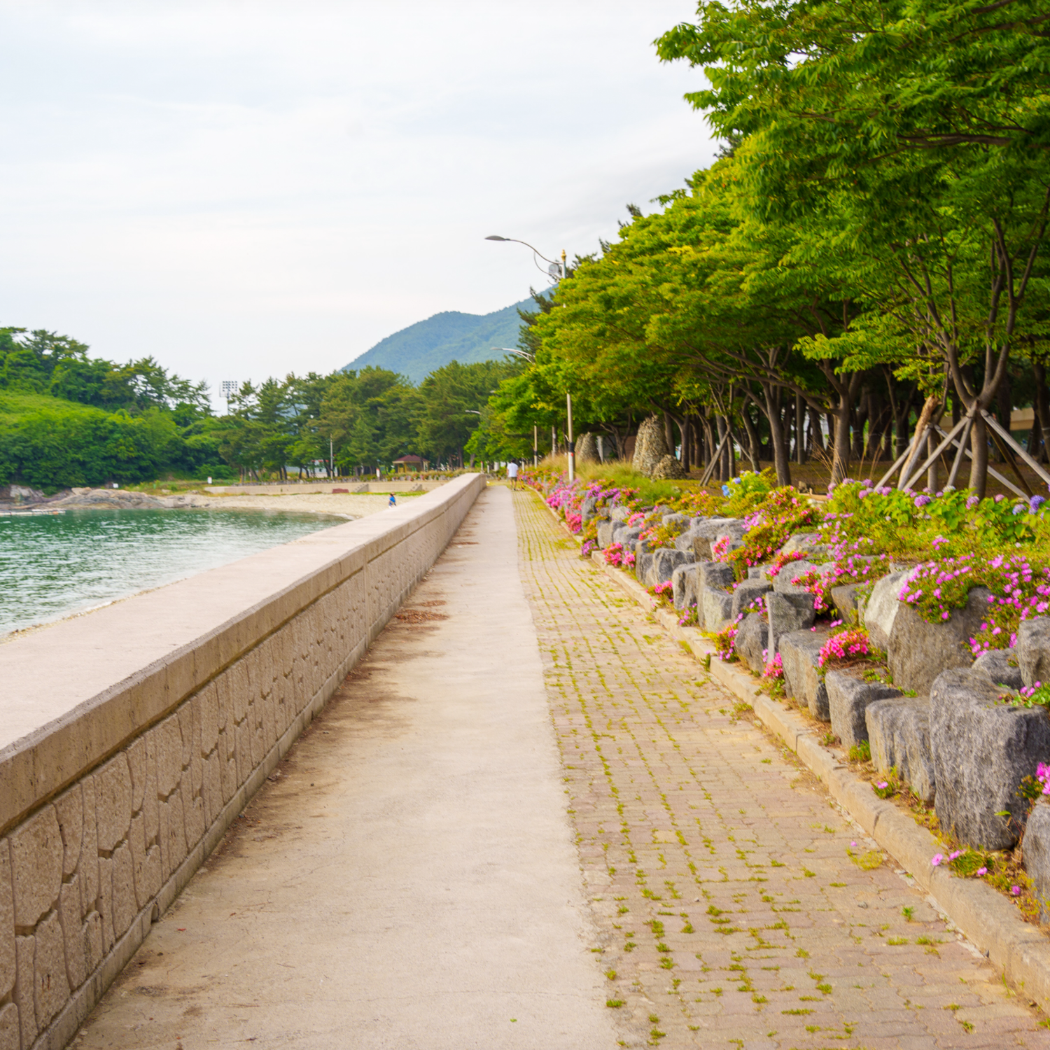 남해의 서쪽, 바다가 한결 잔잔해지는 시간대면 장항해수풀장은 유독 고요합니다. 모래 대신 자갈이 깔린 해변, 낮은 파도 소리가 자꾸만 걸음을 멈추게 해요. 수영복 대신 산책복 차림으로도 충분히 머물 수 있는 바다, 그게 이곳의 가장 큰 매력이 아닐까 합니다. 남해 스포츠파크 호텔 뒤편 길을 따라 몇 분만 걸으면 바로 바다가 펼쳐지고, 그 안쪽으로 해수풀장이 자리하고 있습니다. 이름처럼 바닷물이 직접 유입되는 구조라 바다와 수영장이 맞닿아 있는 듯한 기분을 주죠.