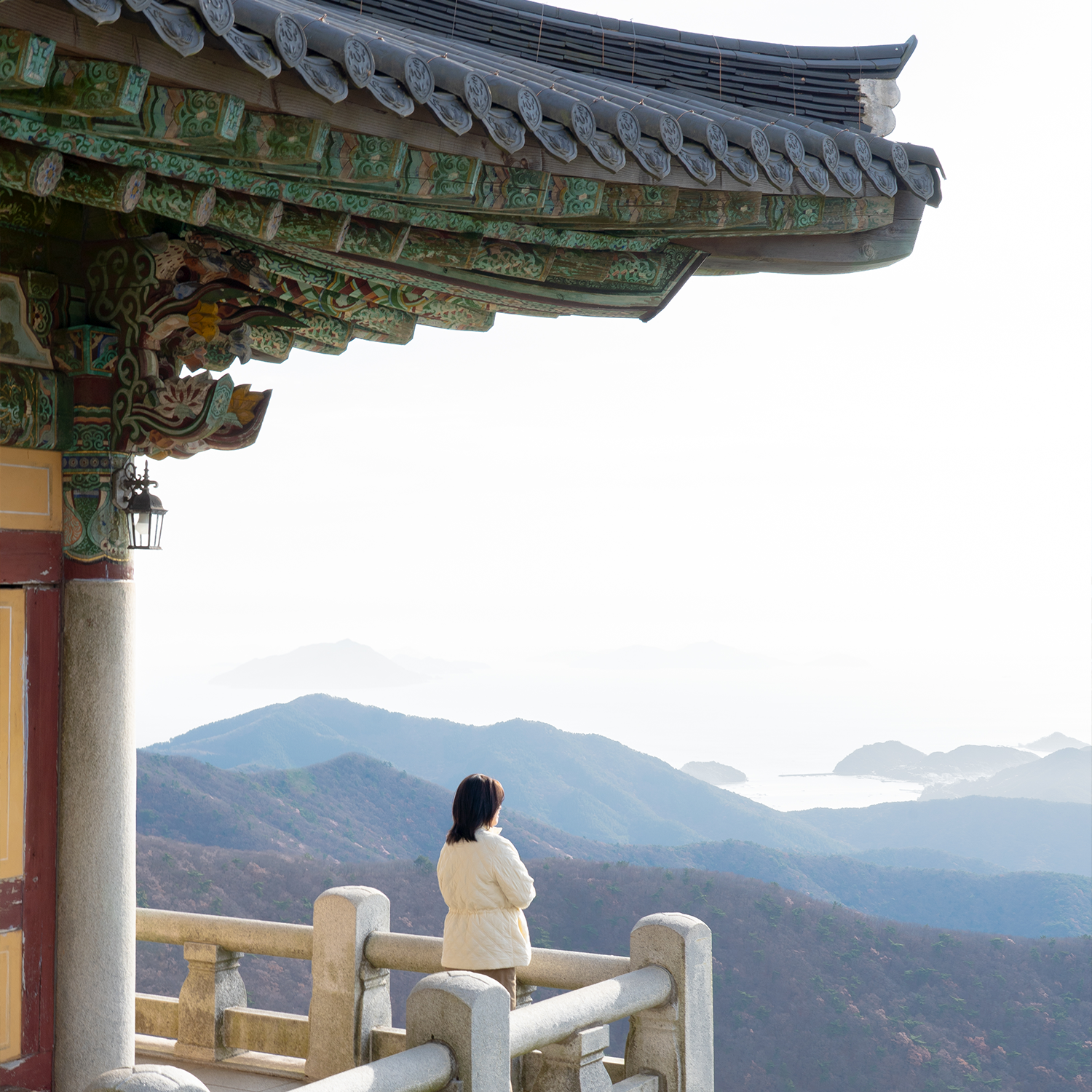 금산의 정상부에 자리한 보리암은 이 산을 특별하게 만드는 또 하나의 이유입니다. 683년, 원효대사가 수행하던 초당에서 시작된 이 암자는 지금도 남해 사람들과 여행자들의 간절한 마음이 모이는 곳이에요. 절벽 위에 앉은 듯한 보리암 마루에 서면, 바다는 더 이상 ‘풍경’이 아니라 숨처럼 느껴집니다.