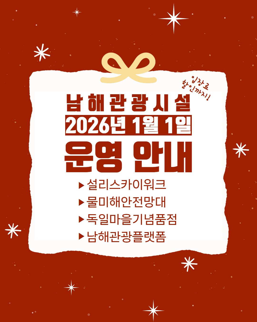 2026년 1/1(목) 새해 첫날 남해 주요 관광시설 운영안내드립니다😊